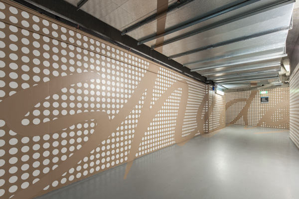 The re-design involved new pedestrian signage and graphics applied to 3-dimensional surfaces that would read as a 2d graphic from various vantage points. The project aims to make the space more inviting and user friendly, increase visiblity from street level and help connect small business owners, weekend footy fans and everyday visitors to the Docklands precinct.